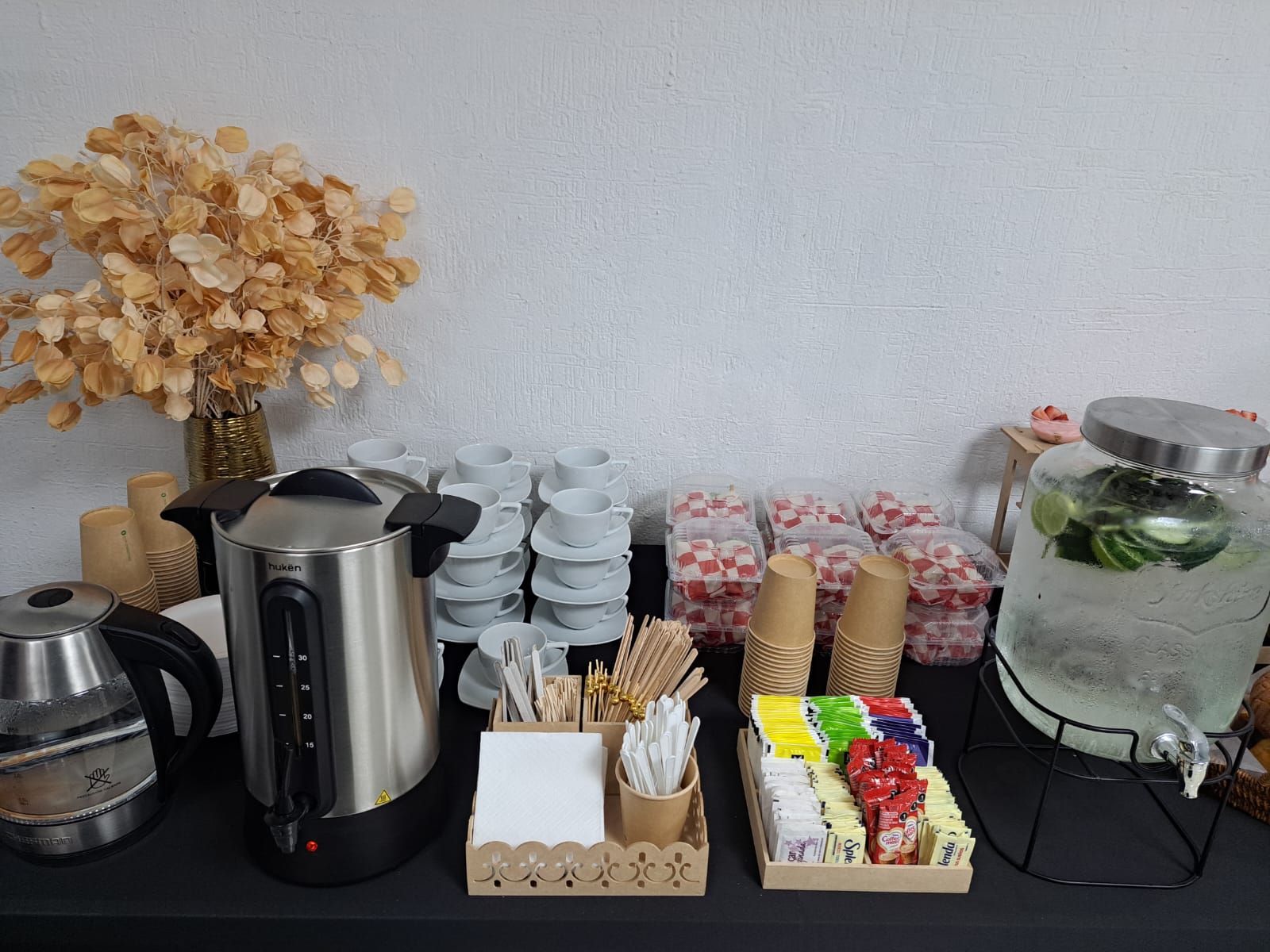 También asegúrate de contar con equipos en buen estado, como termos, dispensadores y vajilla limpia.